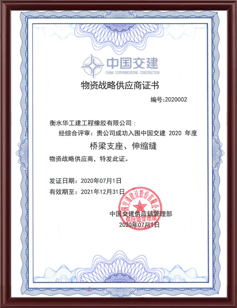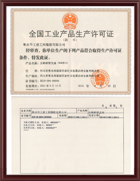 公司于2007年通過了北京新世紀(jì)組織的ISO9001:2008質(zhì)量管理體系的認(rèn)證審核, 2006年12月,我公司獲得了公路橋梁支座全國工業(yè)產(chǎn)品生產(chǎn)許可證,2008年1月又獲得了橡膠密封制品全國工業(yè)產(chǎn)品生產(chǎn)許可證。公司與多家大專院校、科研單位建立了合作關(guān)系。